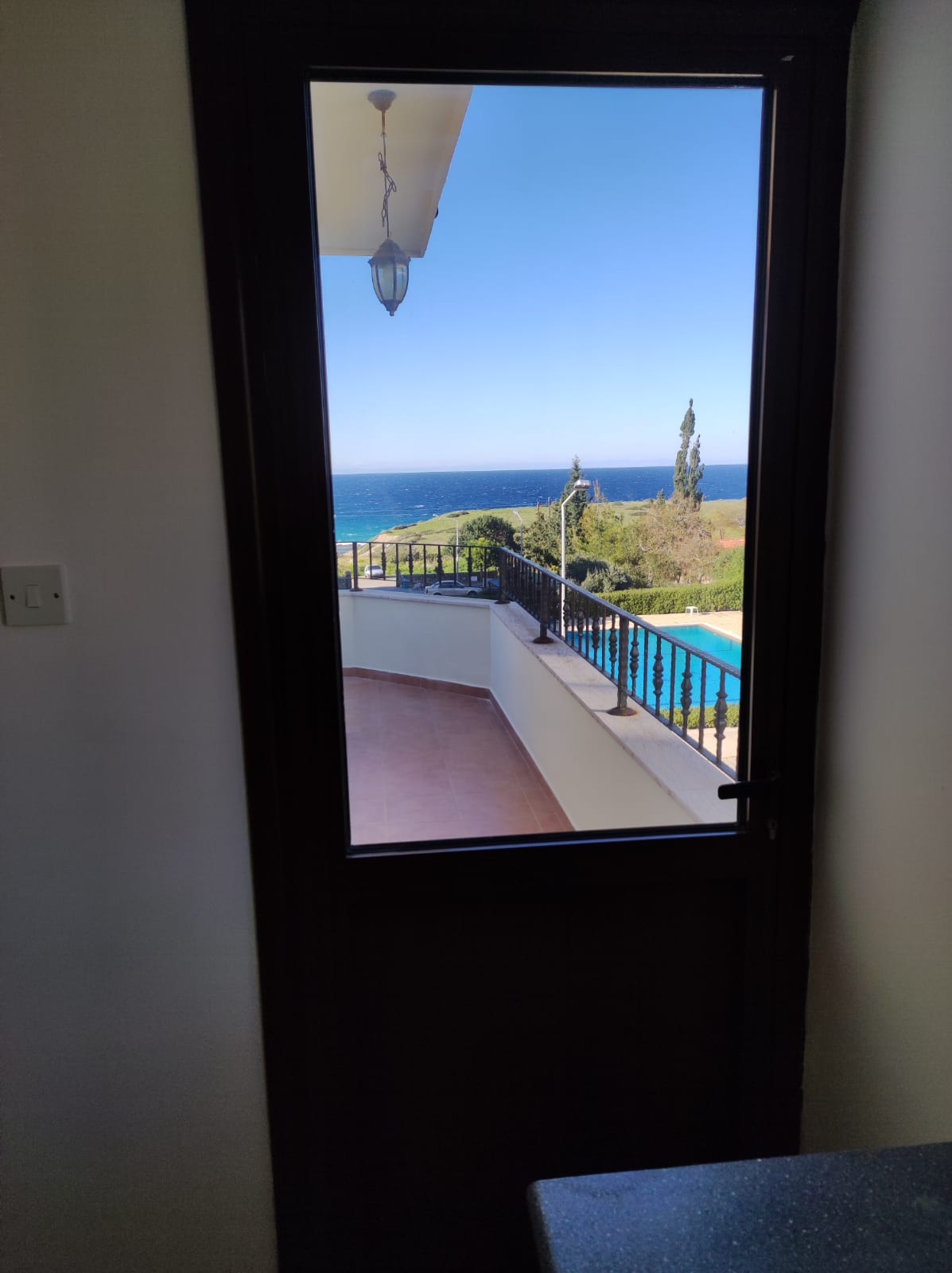 There is a well equipped good sized separate kitchen with access onto the front terrace. The lounge has two windows and patio doors leading out onto the spacious front terrace with stunning views out to the swimming pool, headland and Mediterranean sea beyond.