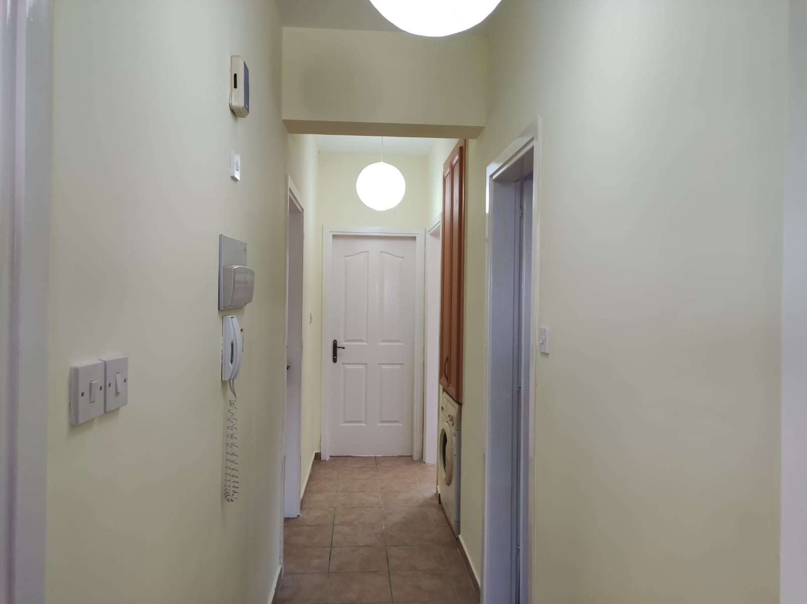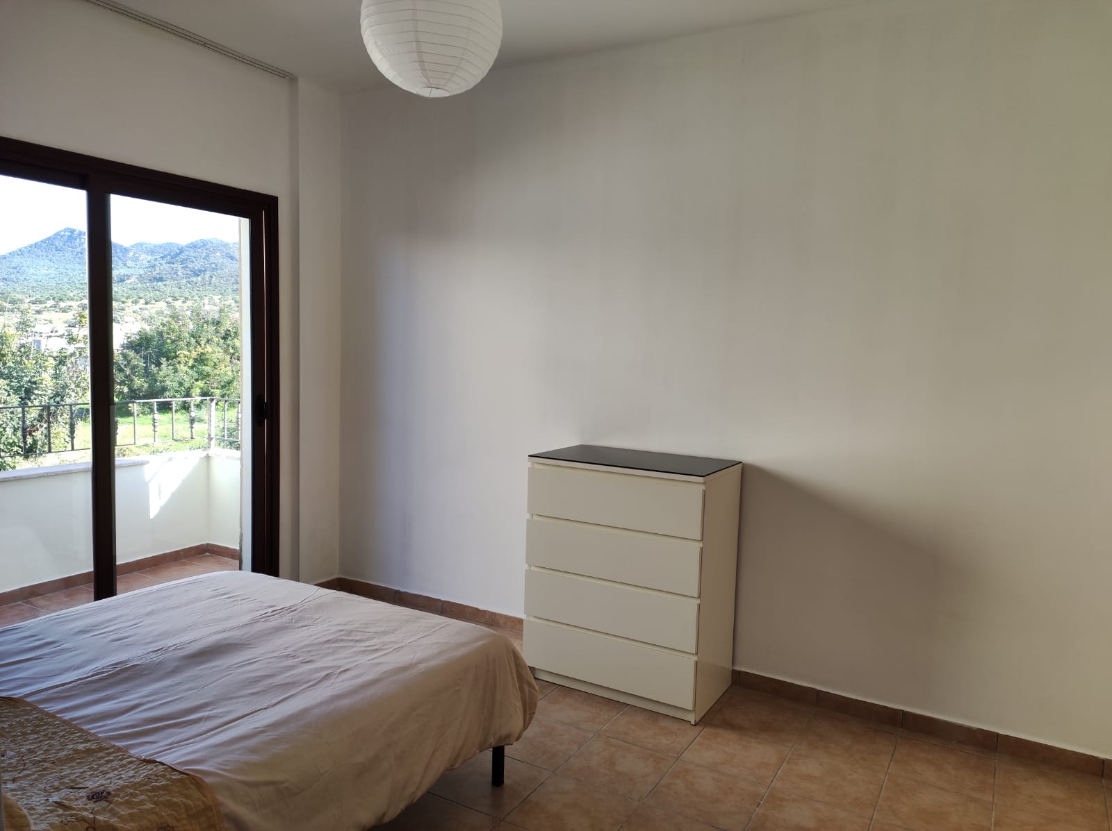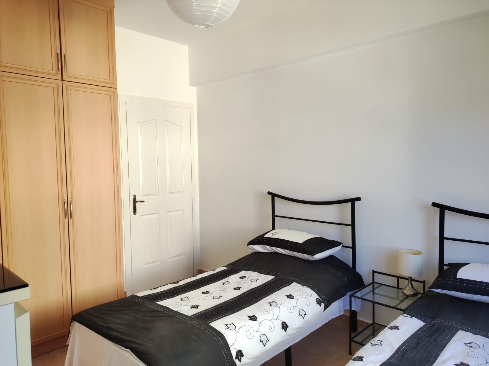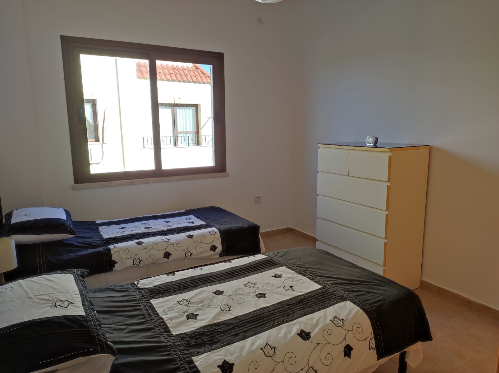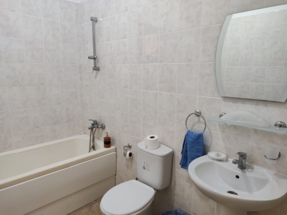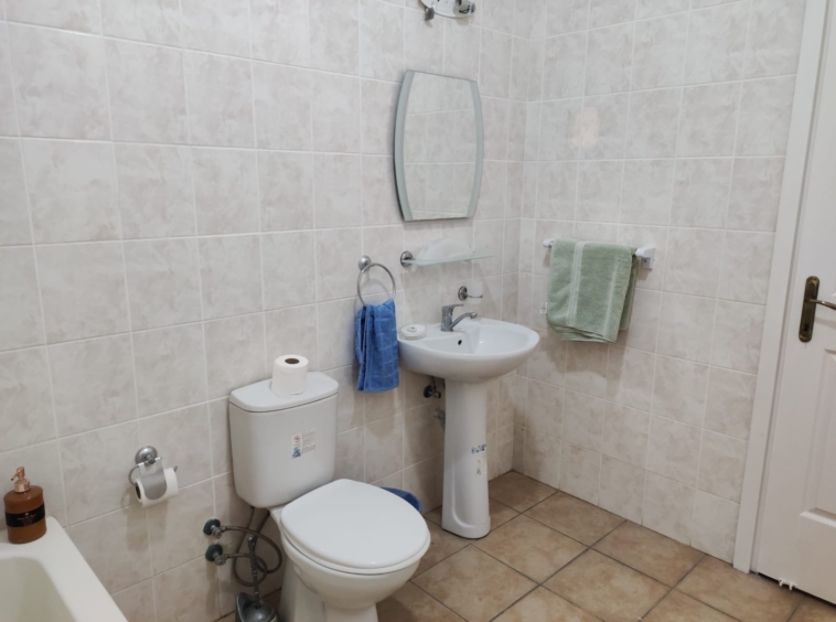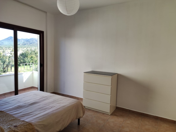 There are 3 generously sized double bedrooms and all have built-in wardrobes. The master bedroom has an ensuite shower and toilet. One bedroom has direct access out to a private terrace with views over the communal garden and the Besparmak mountains behind.
