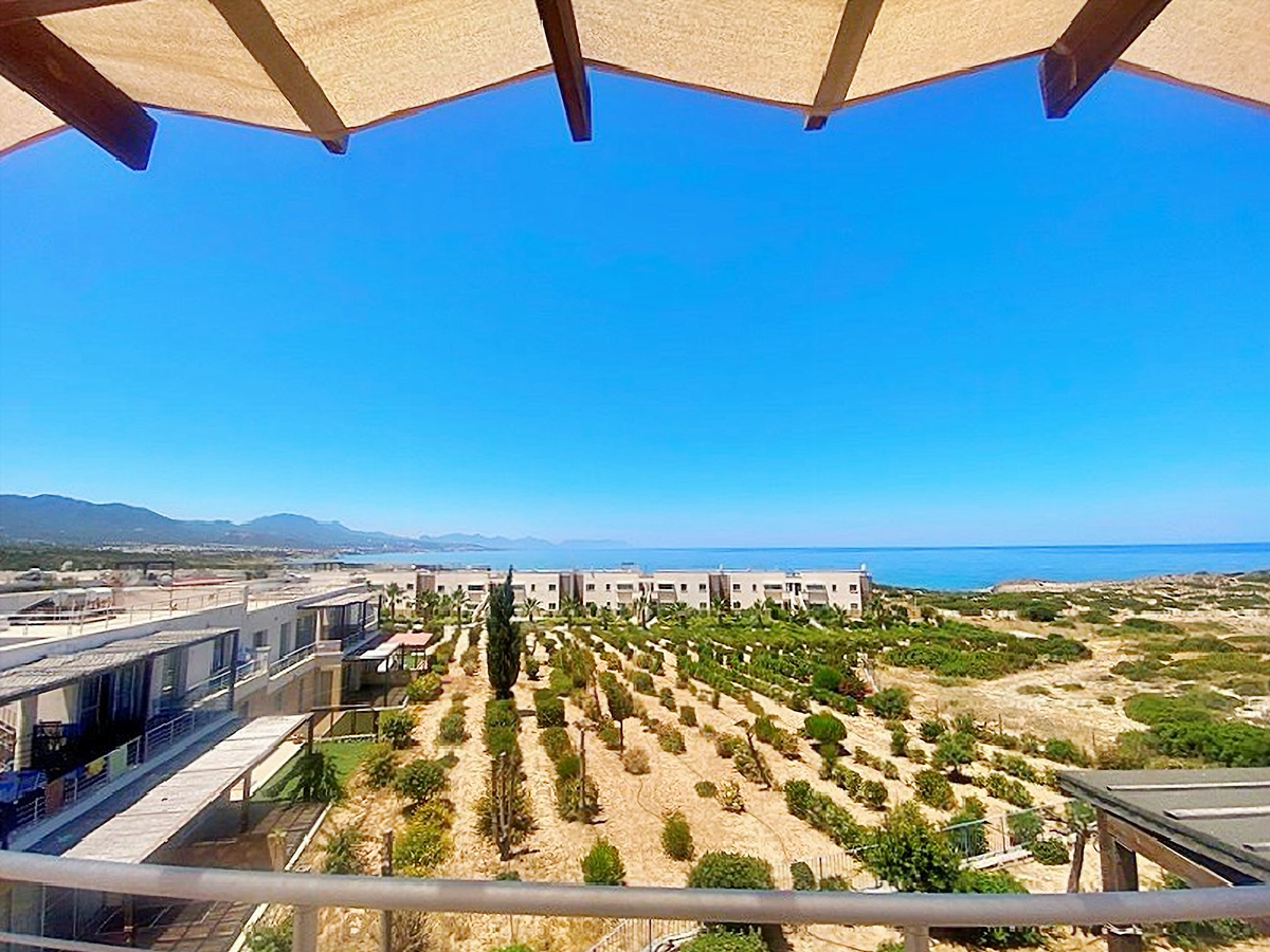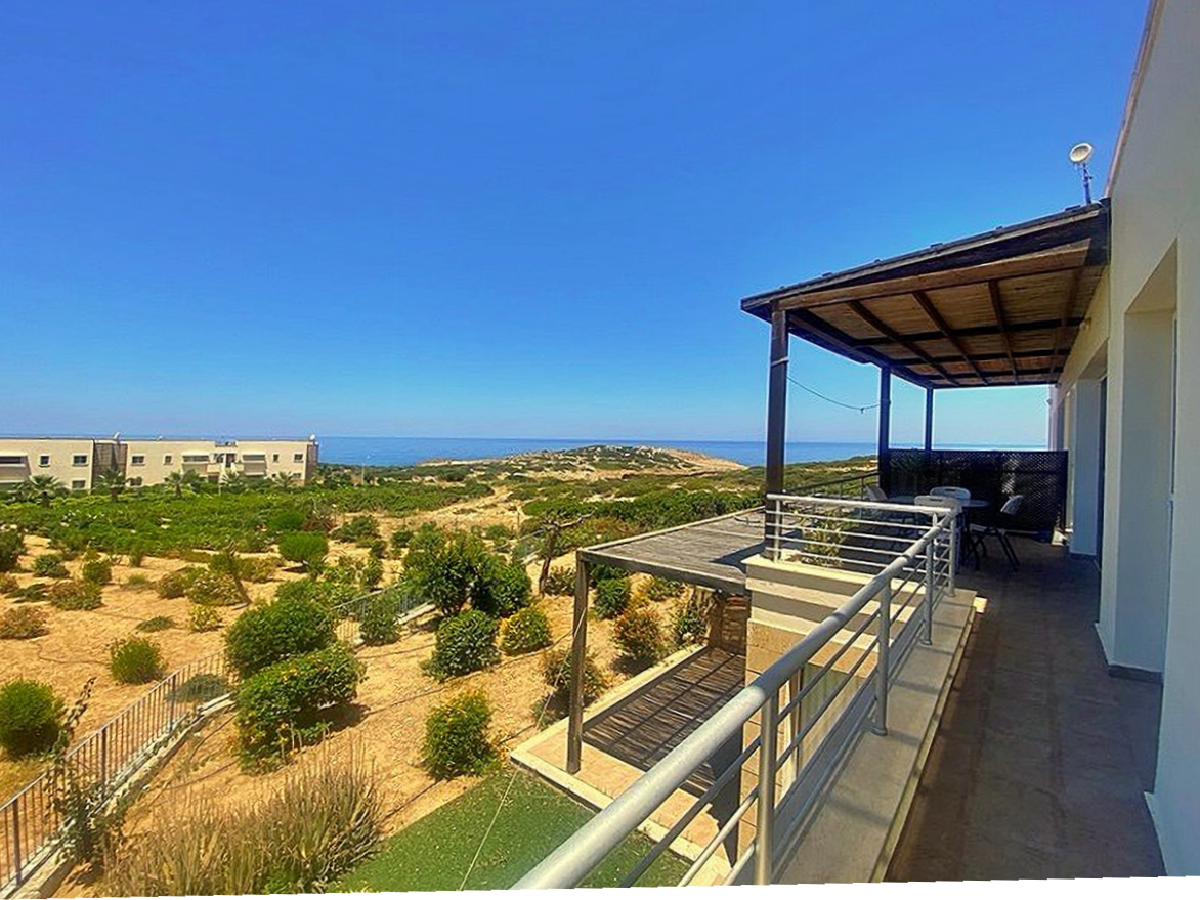 Квартира на первой линии у моря в продаже на Северном Кипре в районе Татлысу. Трехкаомнатная квартира расположена на верхнем этаже (пентхаус) двухэтажного здания откуда открывается прямой вид на море.