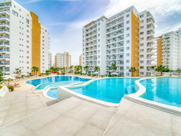 Продажа квартиры в Искеле на Северном Кипре в самом масштабном курортном комплексе. Двухкомнатная квартира расположена на первом этаже (граунд) и имеет выход к бассейну.